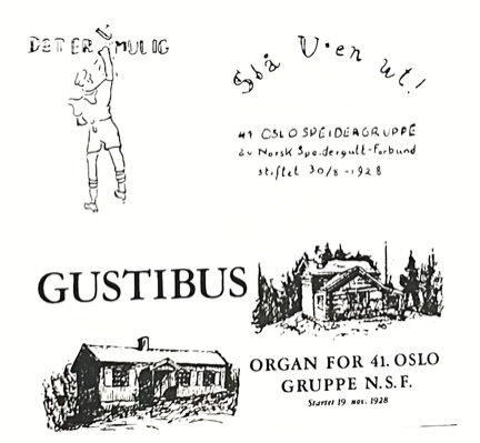 Ved starten bar avisen navnet «41. Oslo» og dette navnet beholdt den til 1954 da den fikk navn etter gruppens motto: Slå U-en ut! I 1957 ga den daværende redaktør, Ove M. Lange, avisen dens nåværende navn, Gustibus. Utseende har imidlertid forandret seg flere ganger gjennom tidene. En milepæl i avisens historie var da nr 1/1982 kom ut ved at man gikk over til tabloidformat. A4 ble erstattet av A5. Avisen har utkommet med fire-seks nummer pr. år samt en del ekstranummer i forbindelse med speiderbrylluper o.l.